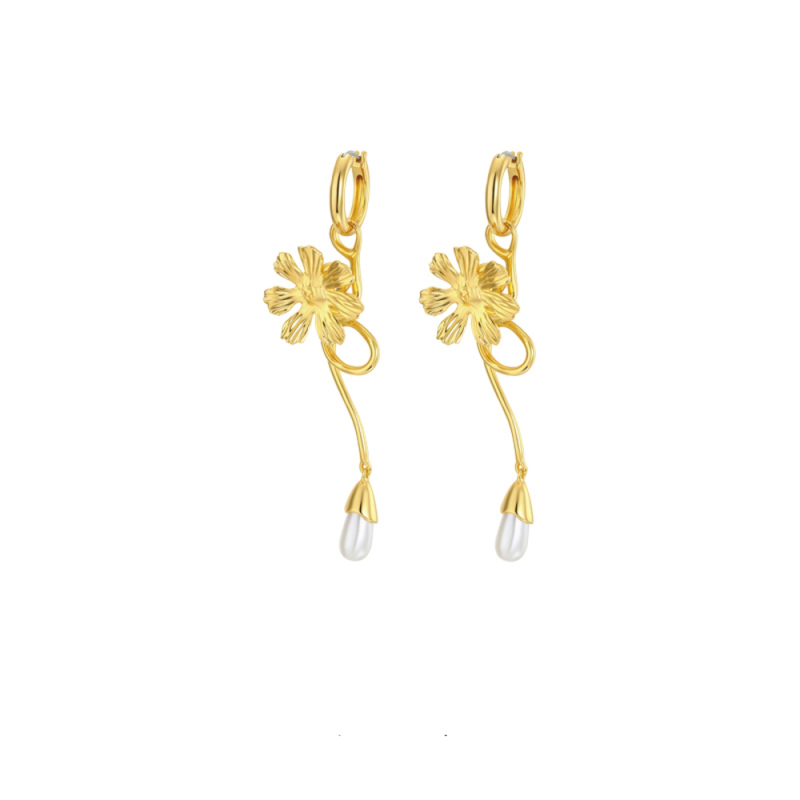 Cosmos Collection With Folding Flower Single Curve Earrings
