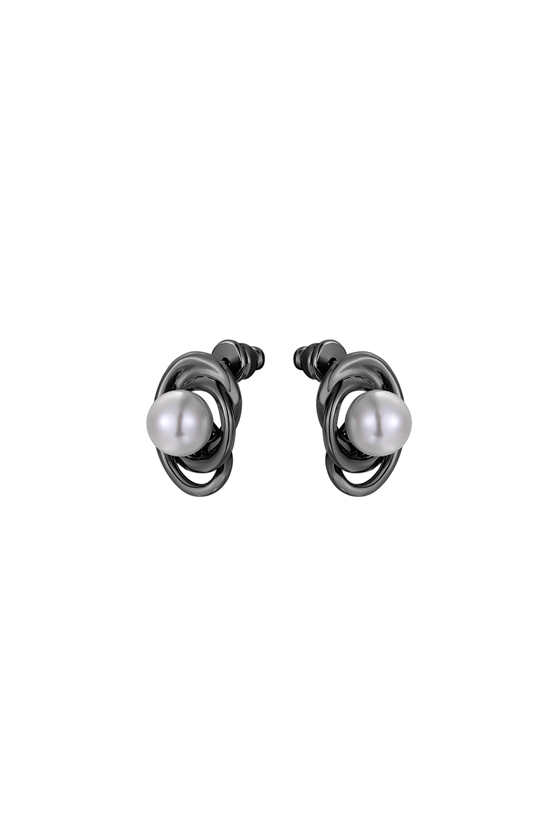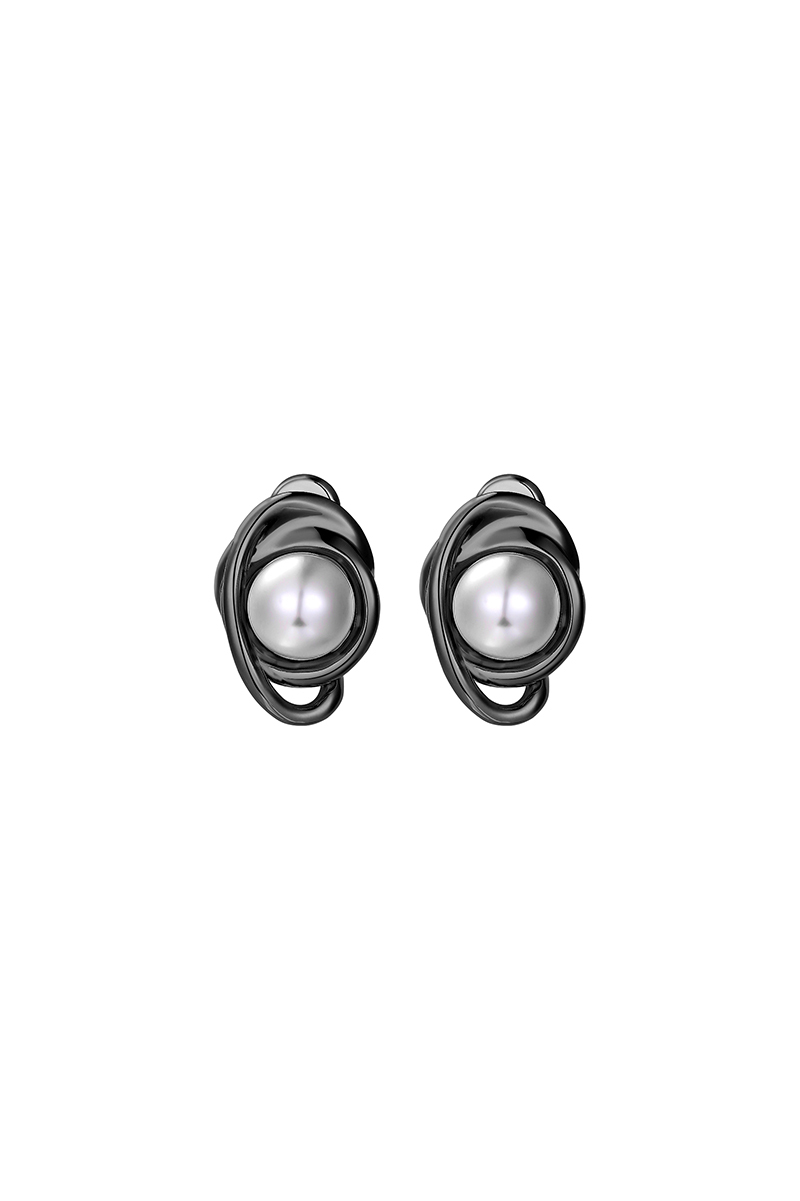Curvilinear Collection Black Pearl Brass Stud Earrings