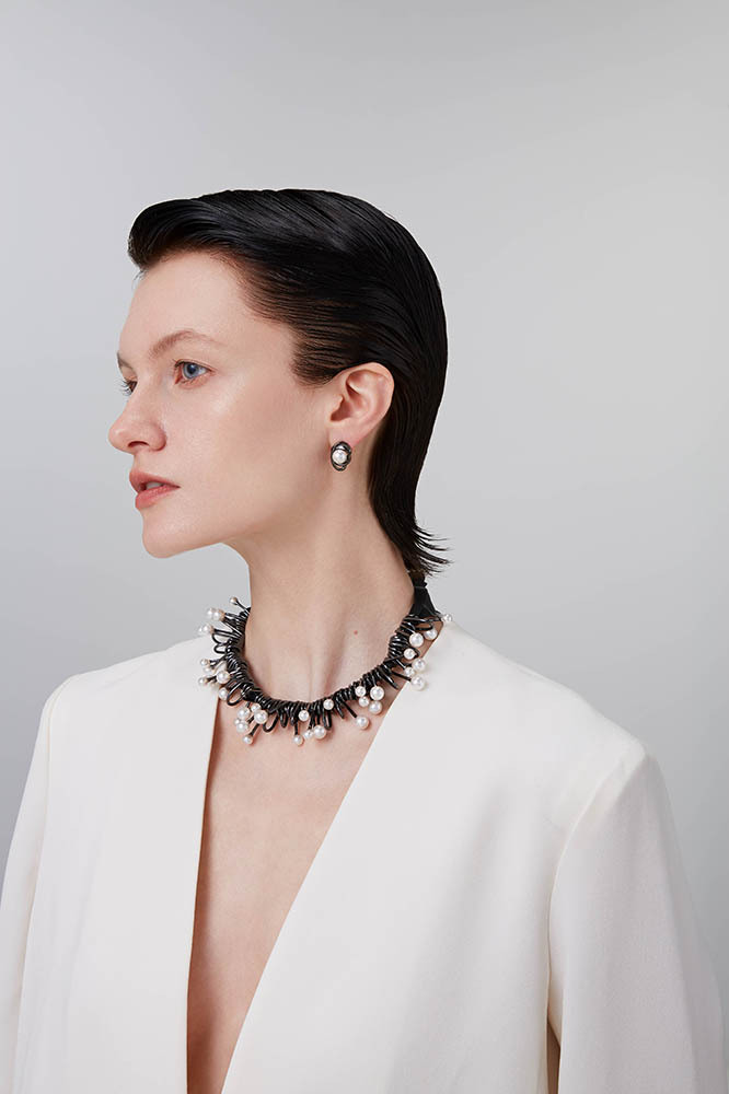 - The Curvilinear Collection of products represents the tension of growing life. The individual pieces of jewelry are extended from their curly native state, all irregularities and extended directions and fine sturdiness demonstrate the beauty of nature.