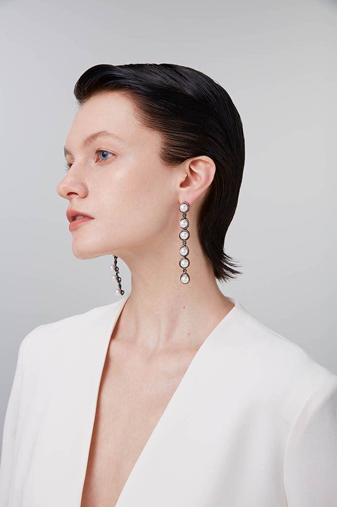 Curvilinear Collection Pearl Drop Earrings With Figure Of 8 Shape