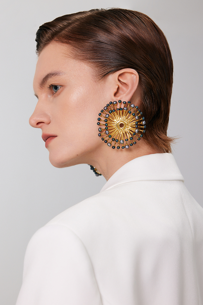 Eucalyptus Collection Double Layer Flower Multi-pearl Earrings