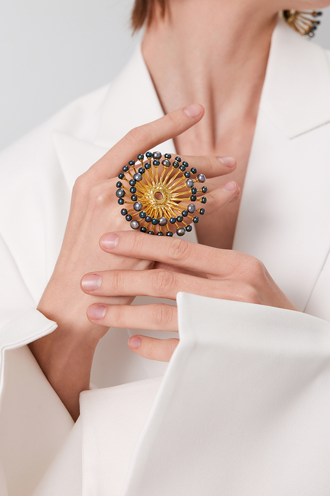 Eucalyptus Collection Double Layer Flower Multi-pearl Ring