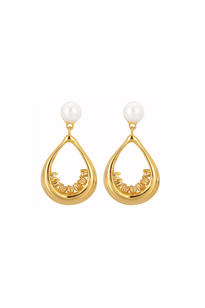 - Material: 14K Gold Plated Brass, White Corundum, Pearl