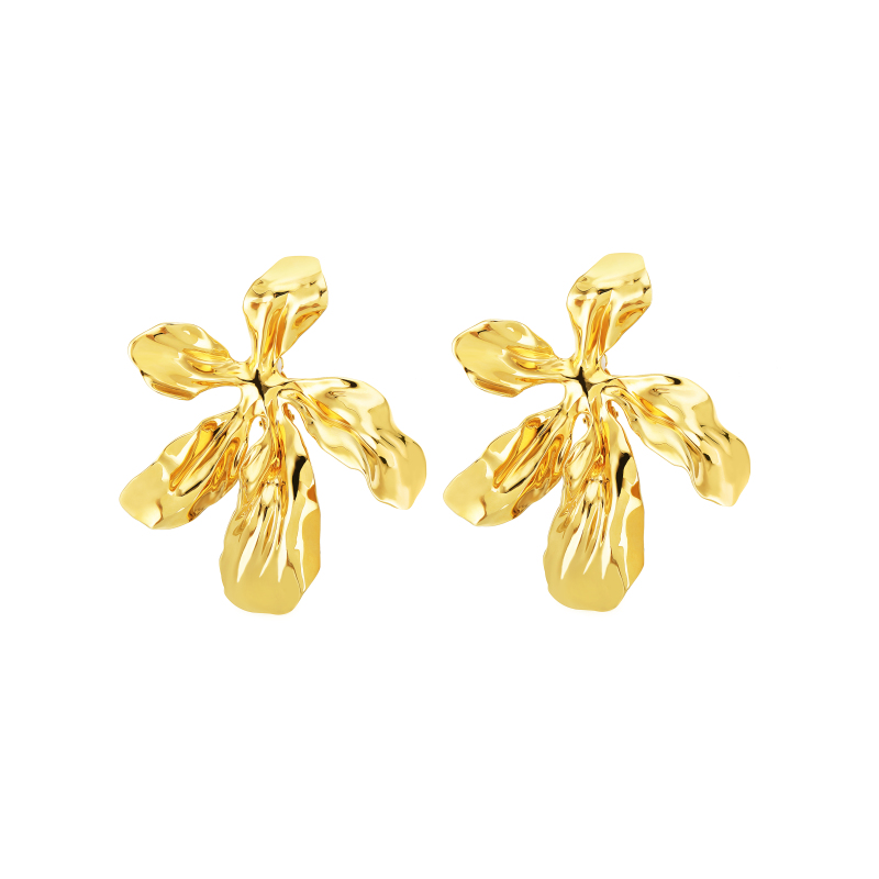 Iris Collection Five Petals Joint Golden Studs Earrings