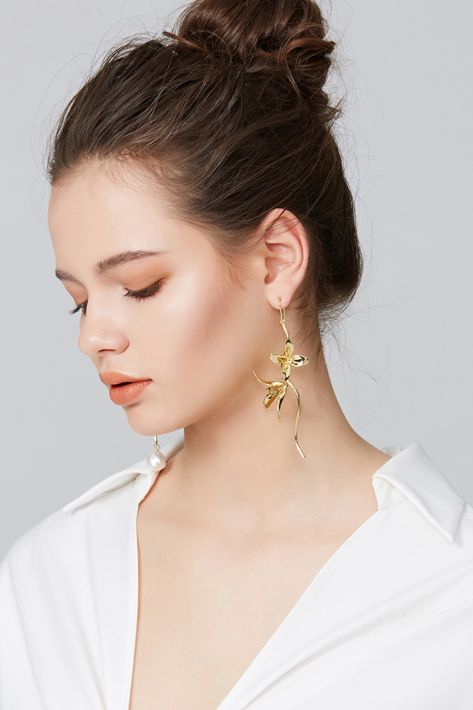 - The earrings feature a natural orchid design, hand carved. White cold enamel gives the earrings a three-dimensional texture, and the asymmetrical ear hook design is soft and elegant, simple and vivid. Perfect for women who love fashion and have aesthetic pursuits.