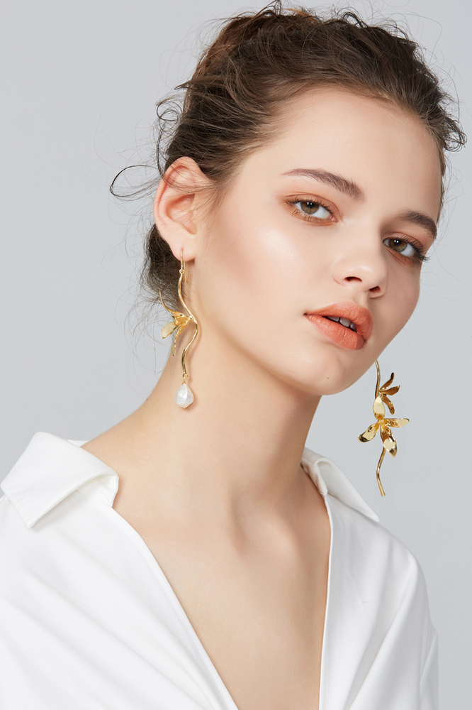 - The earrings feature a natural orchid design, hand carved. White cold enamel gives the earrings a three-dimensional texture, and the asymmetrical ear hook design is soft and elegant, simple and vivid. Perfect for women who love fashion and have aesthetic pursuits.