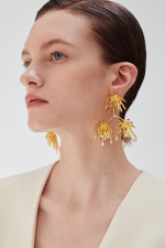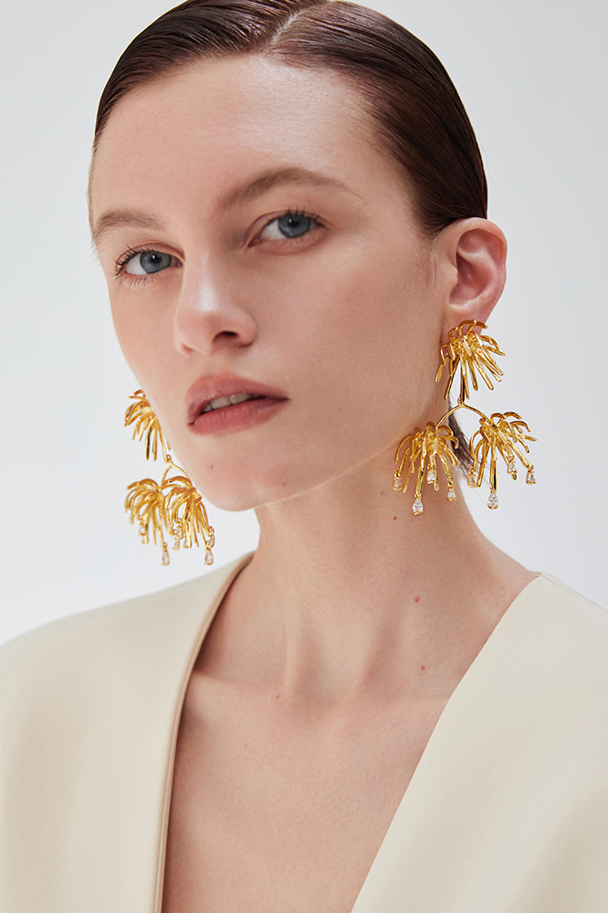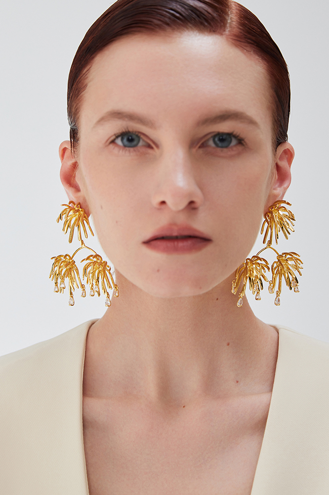 - The tassel earrings in the shape of radiating palm branches are paired with sparkling zircons, which are as smart as water drops hanging after the rain. The multi-layered pendants are swaying and dynamic, giving it a retro and fashionable feel.