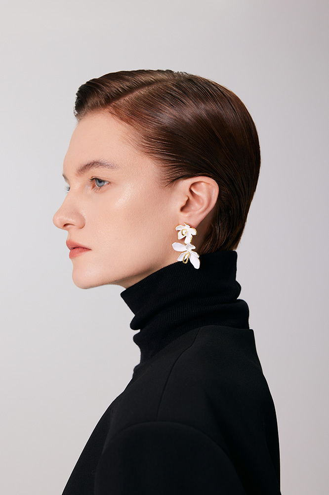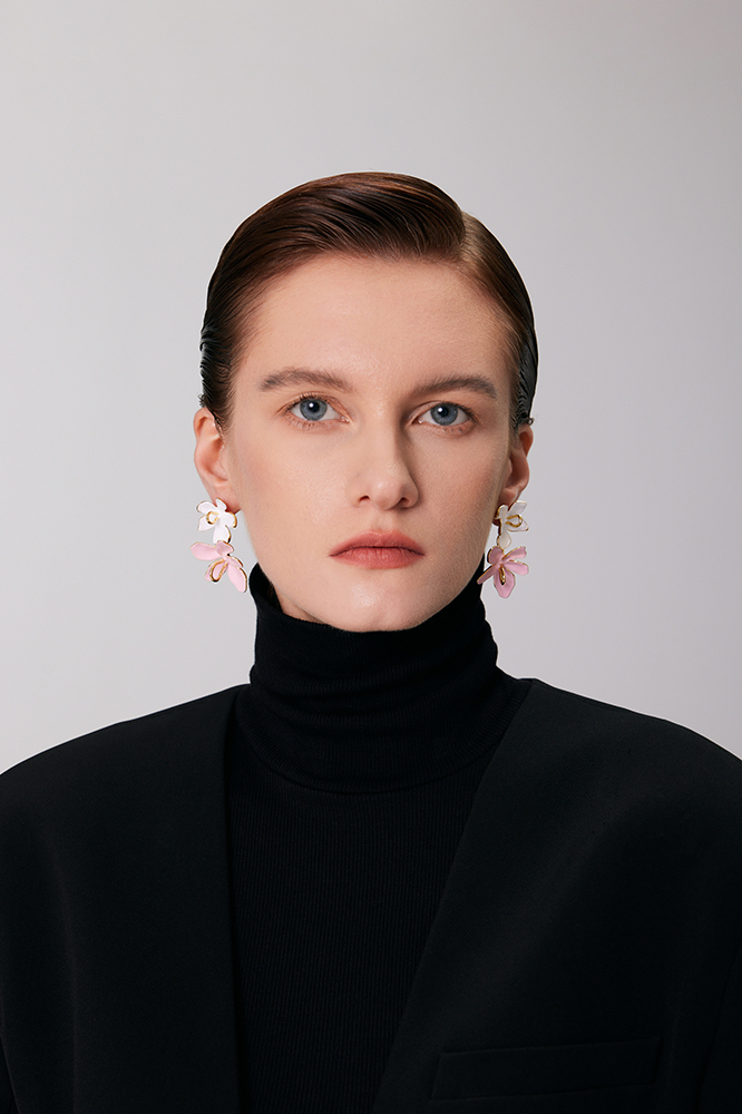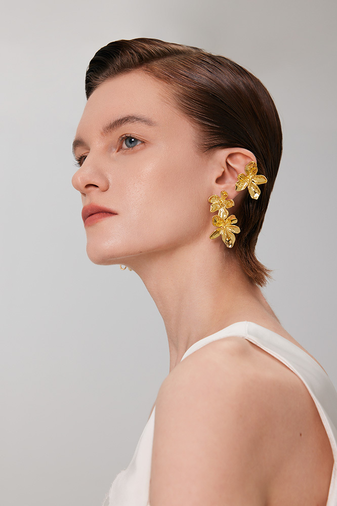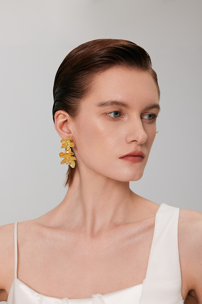 - This pair of earrings adopts the realistic shape of peach blossoms, which is smart and elegant. The pistils are simplified into simple geometric lines, making them suitable for daily wear.