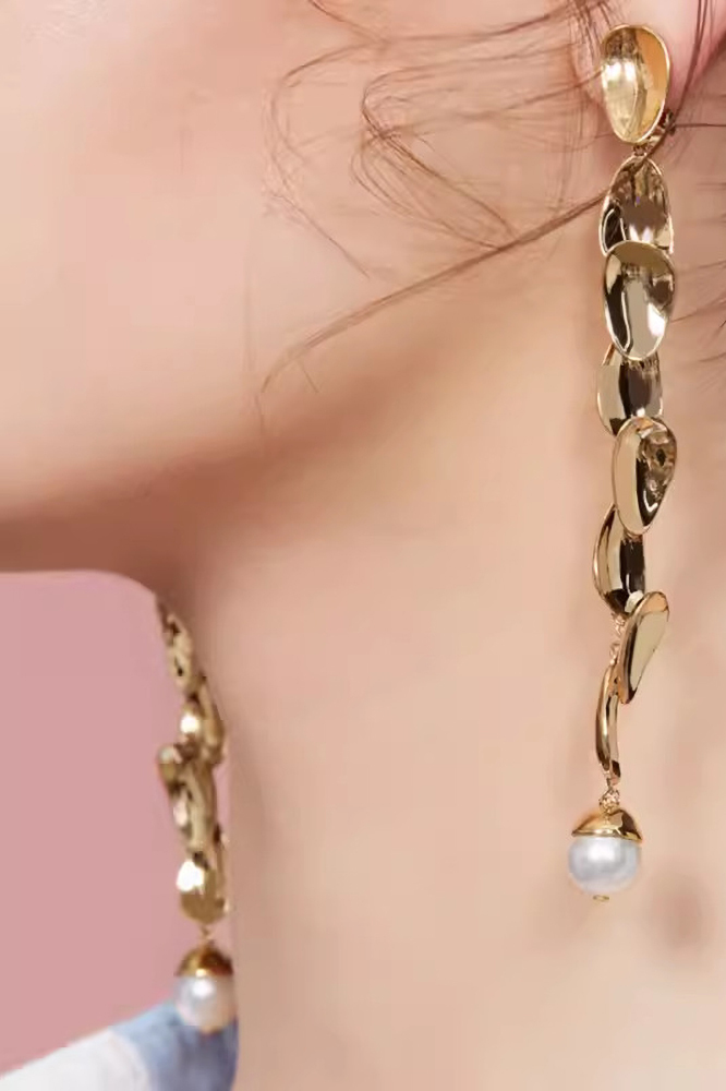 Petals Collection Eight Petals Golden Tassel Ear Clips With Pearls
