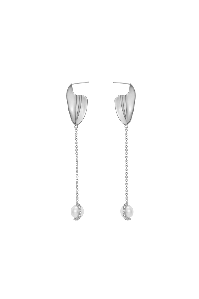 Petals Collection Petal Tassel Silver Earrings With Pearl Crystal