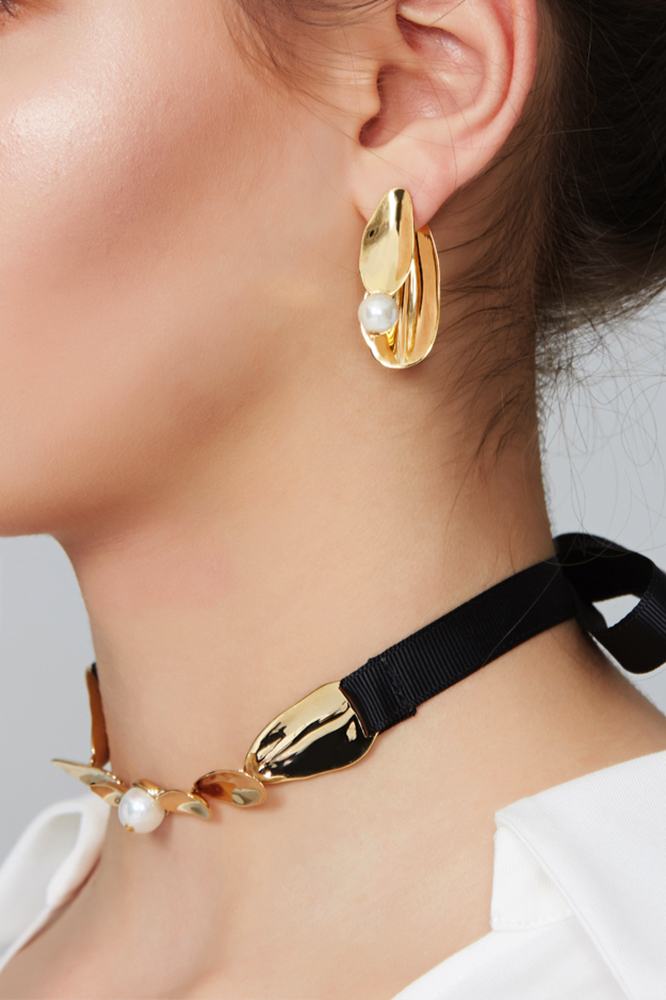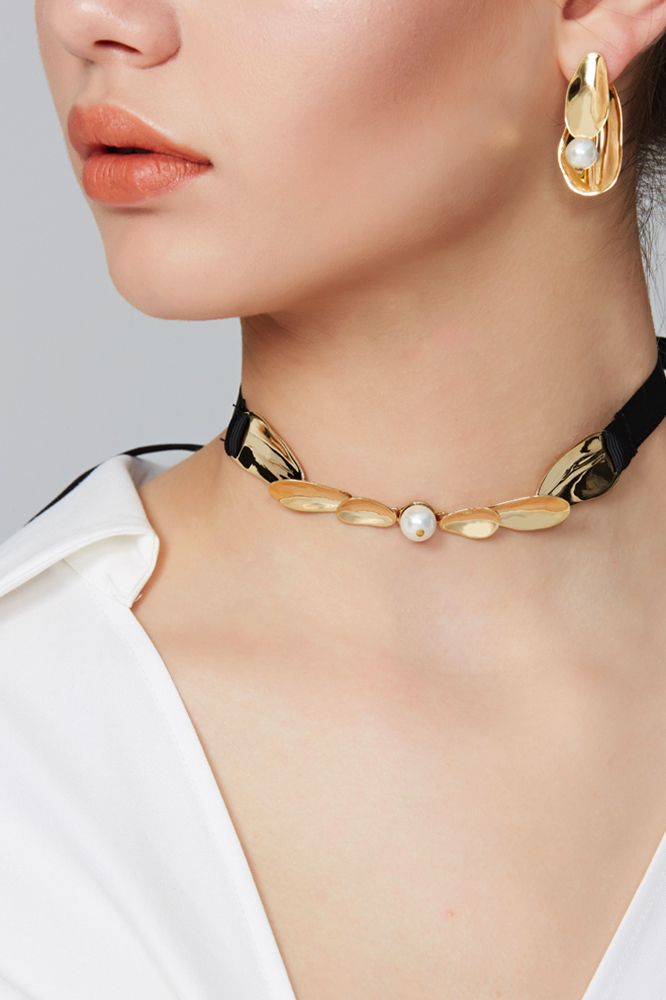 Petals Collection Six Petals Choker With Pearl Ribbon
