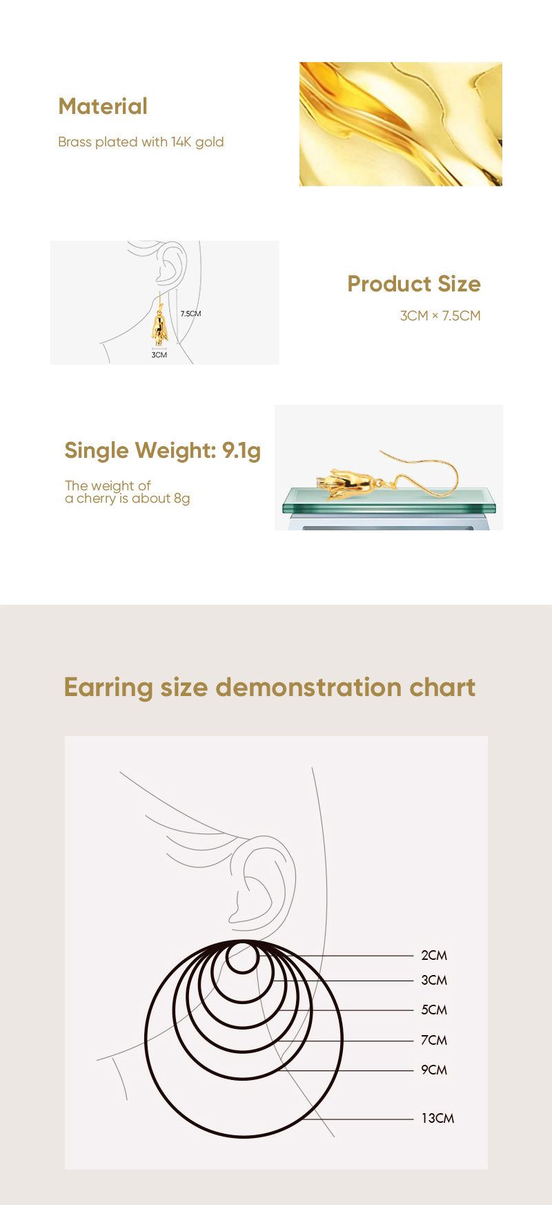 - Material: 14K Gold Plated Brass, White Corundum