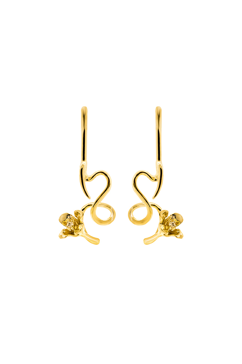 Tulip Collection Single Flower Earrings With White Corundum