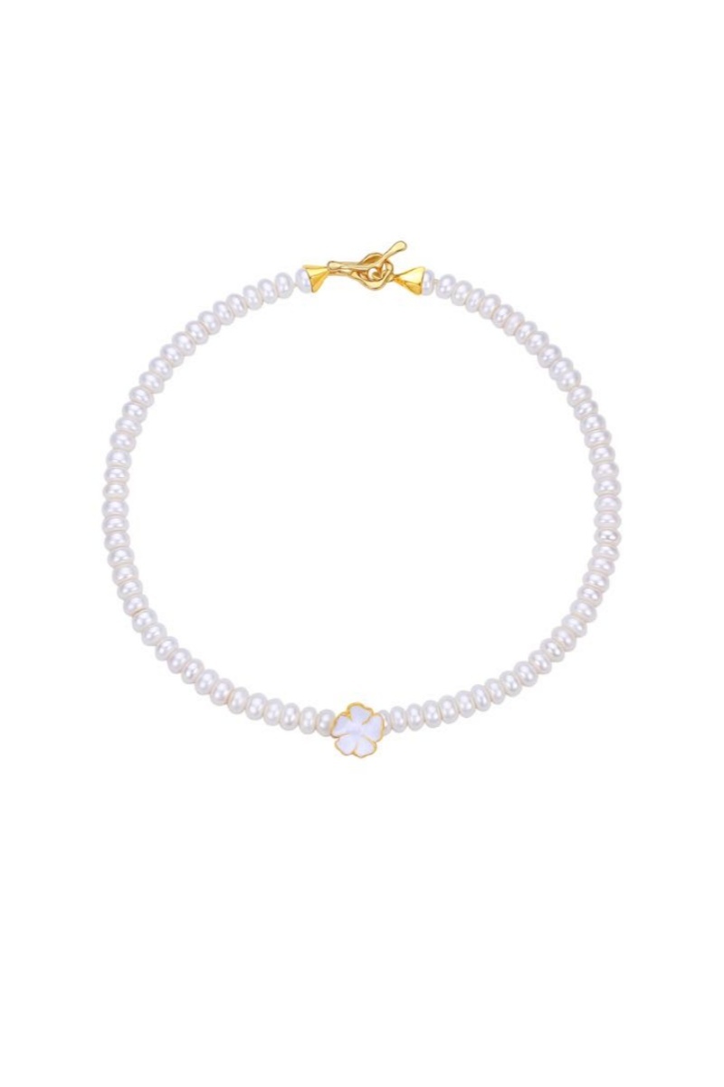 - Material: 14K Gold Plated Brass,White Enamel,Fresh Water Pearl