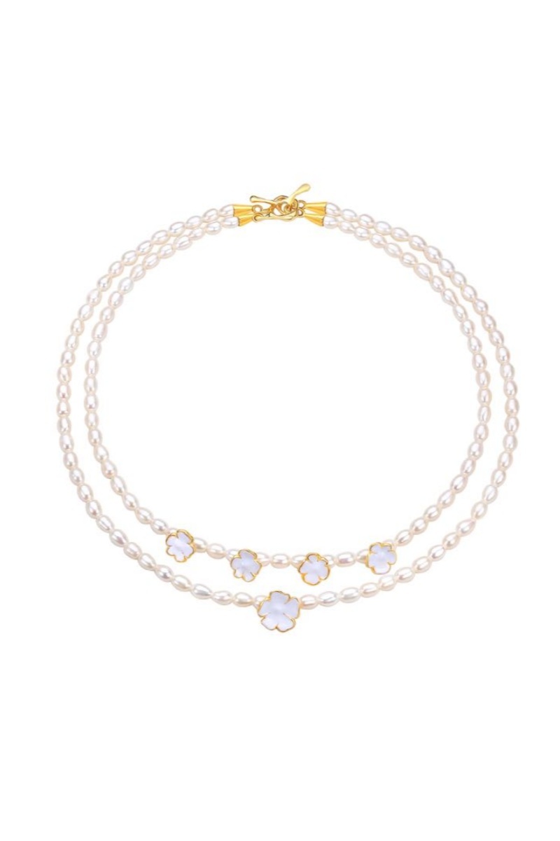 Wild Rose Collection Multi-string Flower Choker With Pearls